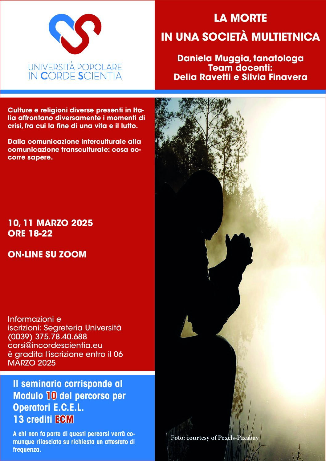 7 GENNAIO 2025 - ore 18 - 22; 8 GENNAIO 2025 - ore 18 - 22; 9 GENNAIO 2025 - ore 18 - 22 ON LINE SU ZOOM Informazioni e iscrizioni: corsi@incordescientia.eu Segreteria Università Tel. 375.78.40.688...